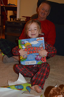 Christmas Eve we had a great dinner of green enchiladas. YUM! After dinner we all changed into our festive pj's for present opening. We hadnt had any presents under the tree until that night bc Brady kept trying to open them. It was so fun watching the happiness on Brady's face.